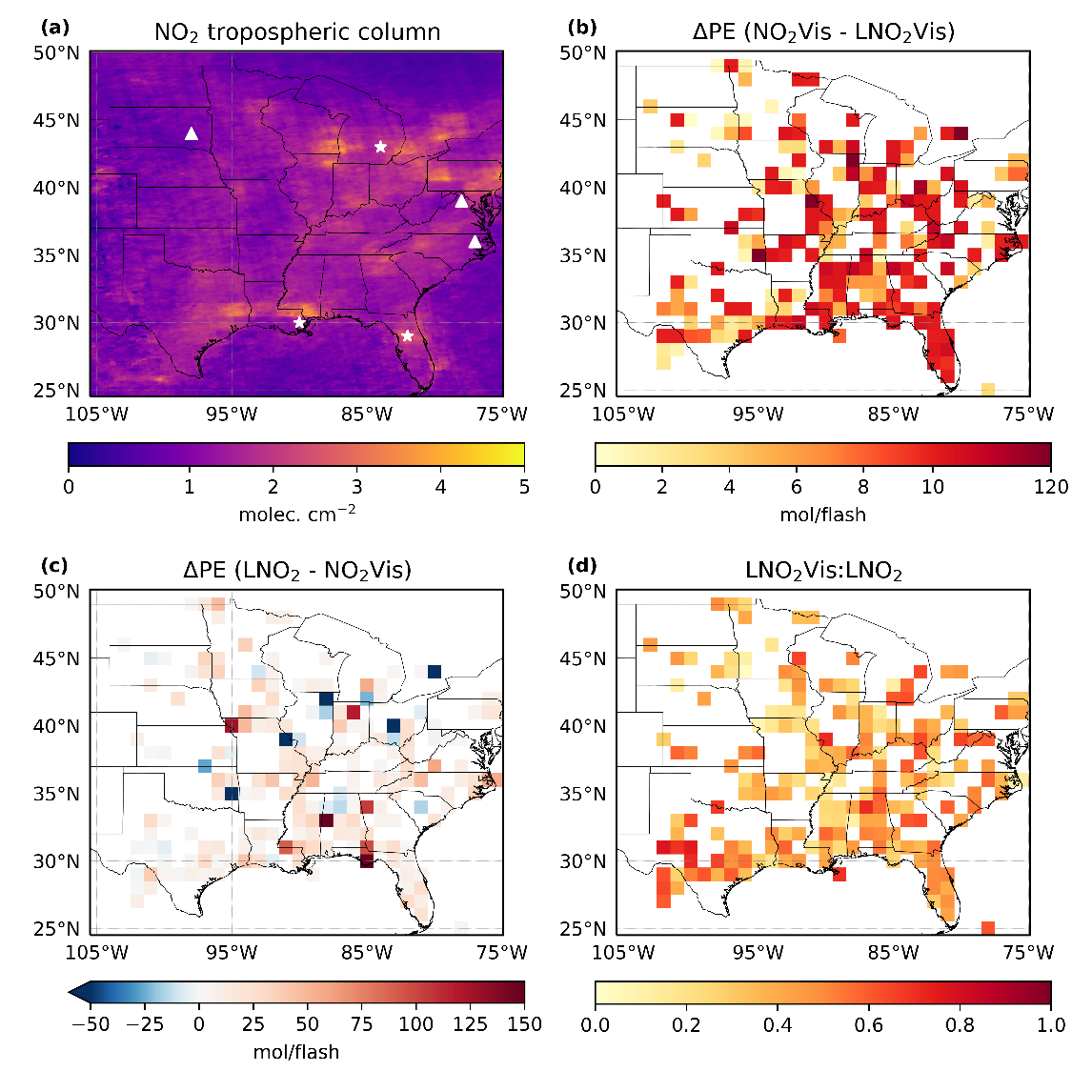 Zhang, Xin; Yin, Yan; van der A, Ronald; Lapierre, Jeff L.; Chen, Qian; Kuang, Xiang et al. (2020): Estimates of lightning NOx production based on high-resolution OMI NO2 retrievals over the continental US. In Atmos. Meas. Tech. 13 (4), pp. 1709–1734. DOI: 10.5194/amt-13-1709-2020.